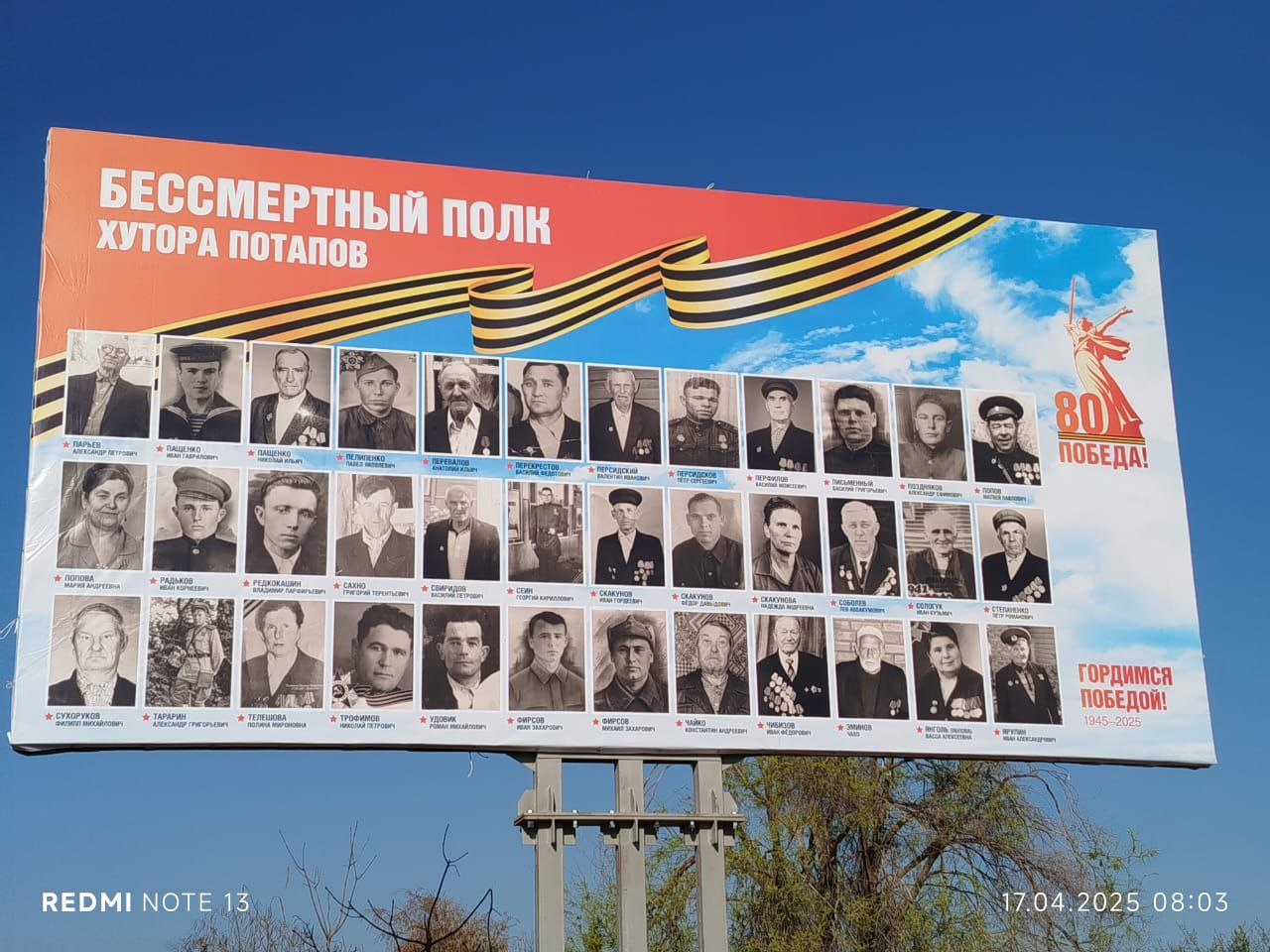 Выражаем глубокую признательность и благодарность коллективу и главе Администрации Потаповского поселения Андрею Викторовичу Малюгину за установку памятного баннера ветеранам Великой Отечественной войны хутора Потапов, которые отдали свои жизни, чтобы защитить нашу страну и наш народ от фашистских захватчиков.