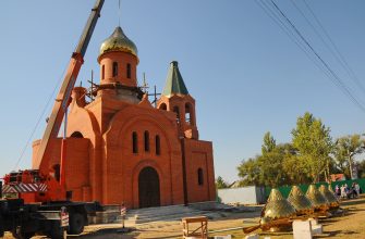 Ранним погожим утром в центре х. Потапов у строящегося храма святого благоверного князя Александра Невского