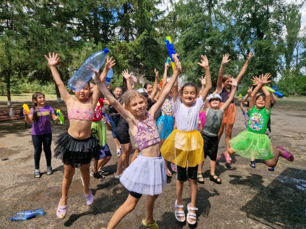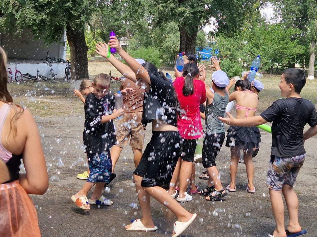 Но главное событие праздника было впереди! Кульминацией стала массовая водная битва, в которой никто не остался сухим. Обливаясь тёплой водой, дети радовались и наслаждались каждым мгновением весёлого хаоса.