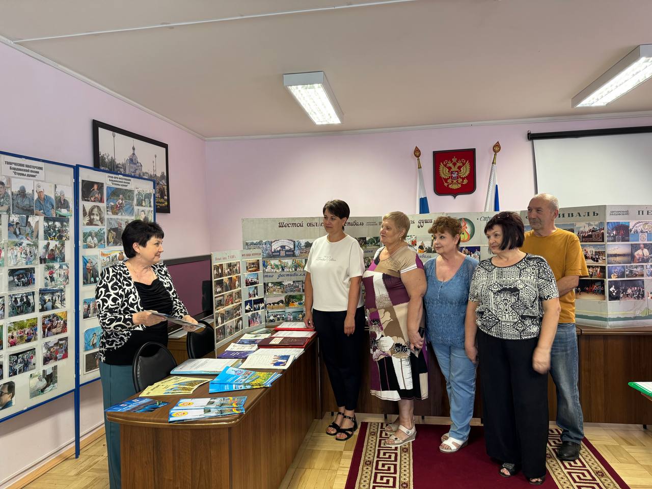 Гостям были представлены две тематические выставки, подготовленные сотрудниками архива. Одна экспозиция была посвящена Году Защитника Отечества и Дню Ветеранов боевых действий, на которой демонстрировались документы военных лет и материалы, связанные с участниками специальной военной операции. Другая выставка включала документы из фонда фестиваля авторской песни «Струны души». Мероприятие получилось насыщенным, информативным и оставило у посетителей приятные впечатления.