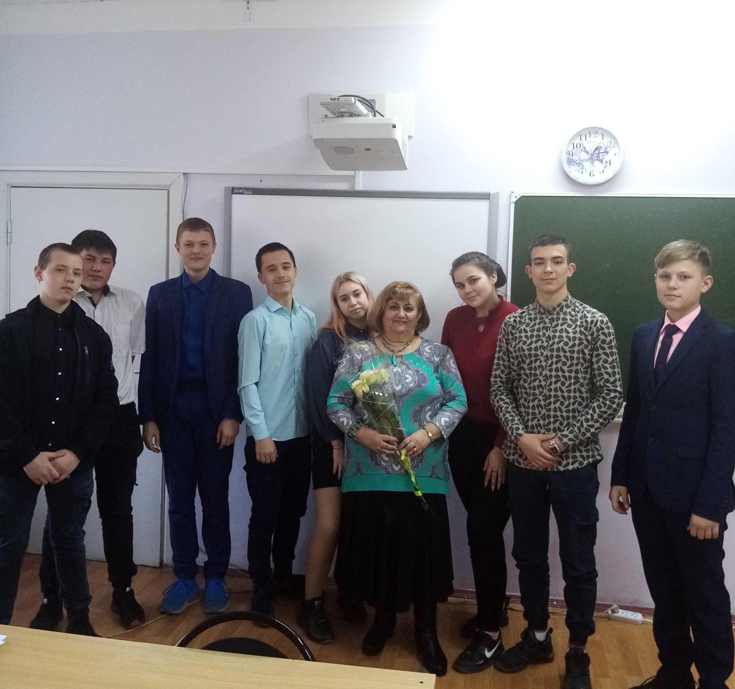 Самым трогательным моментом встречи было обращение к Розе Александровне её выпускников, ныне учащихся 9-г класса, где ребята высказывали слова благодарности и глубокой признательности за труд любимого первого учителя.