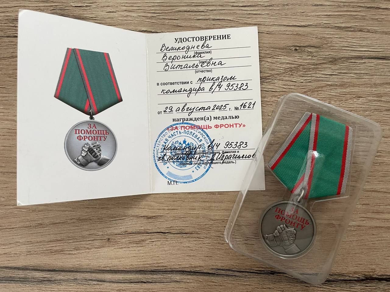 Искренние и теплые видеоприветы юнармейца Вероники увидело командование воинской части и сочло нужным отметить медалью душевный порыв подростка, как и ее отца, который имеет не одну награду за помощь участникам Специальной военной операции.