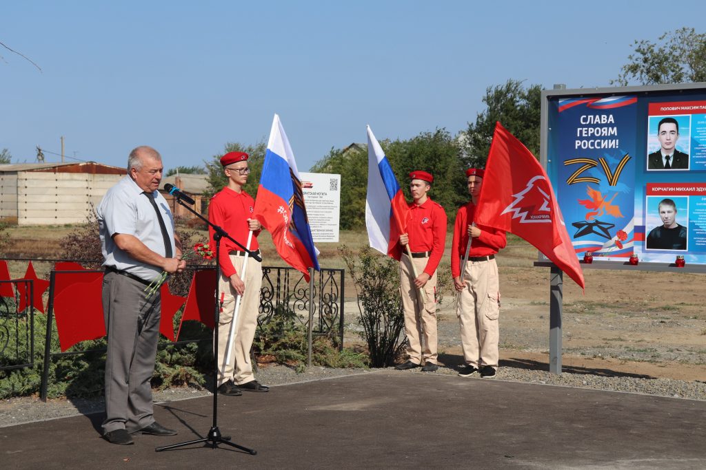 — Человек живёт во имя жизни, стремится вперёд. Покидая этот мир, он оставляет на этой земле особую память, которая живёт в наших сердцах. Мы запомним наших героев как людей, для которых честь, совесть, защита того, что дорого — не пустые слова, а руководство к действию. Они — солдаты России, которыми гордится страна. Они погибли во имя жизни других, спокойствия и мира на нашей земле. Наш долг — эту память хранить, — сказал глава администрации Рябичёвского сельского поселения — Георгий Анатольевич Климов.