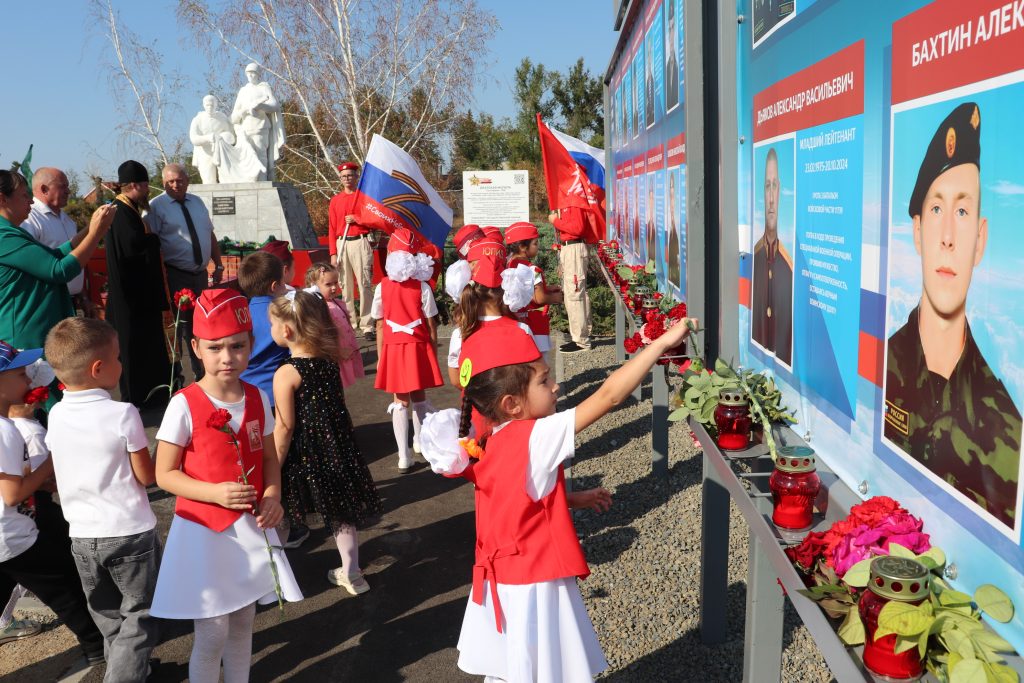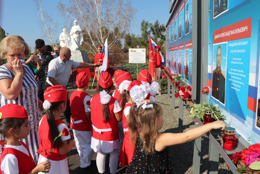 Митинг, посвящённый открытию мемориального стенда памяти, начался с Гимна Российской Федерации, который объединил всех собравшихся — представителей старшего поколения, людей среднего возраста, молодёжи и воспитанников детского сада, застывших строем с цветами в руках. Настоятель храма Николая Чудотворца отец Василий отслужил заупокойную службу по погибшим воинам.