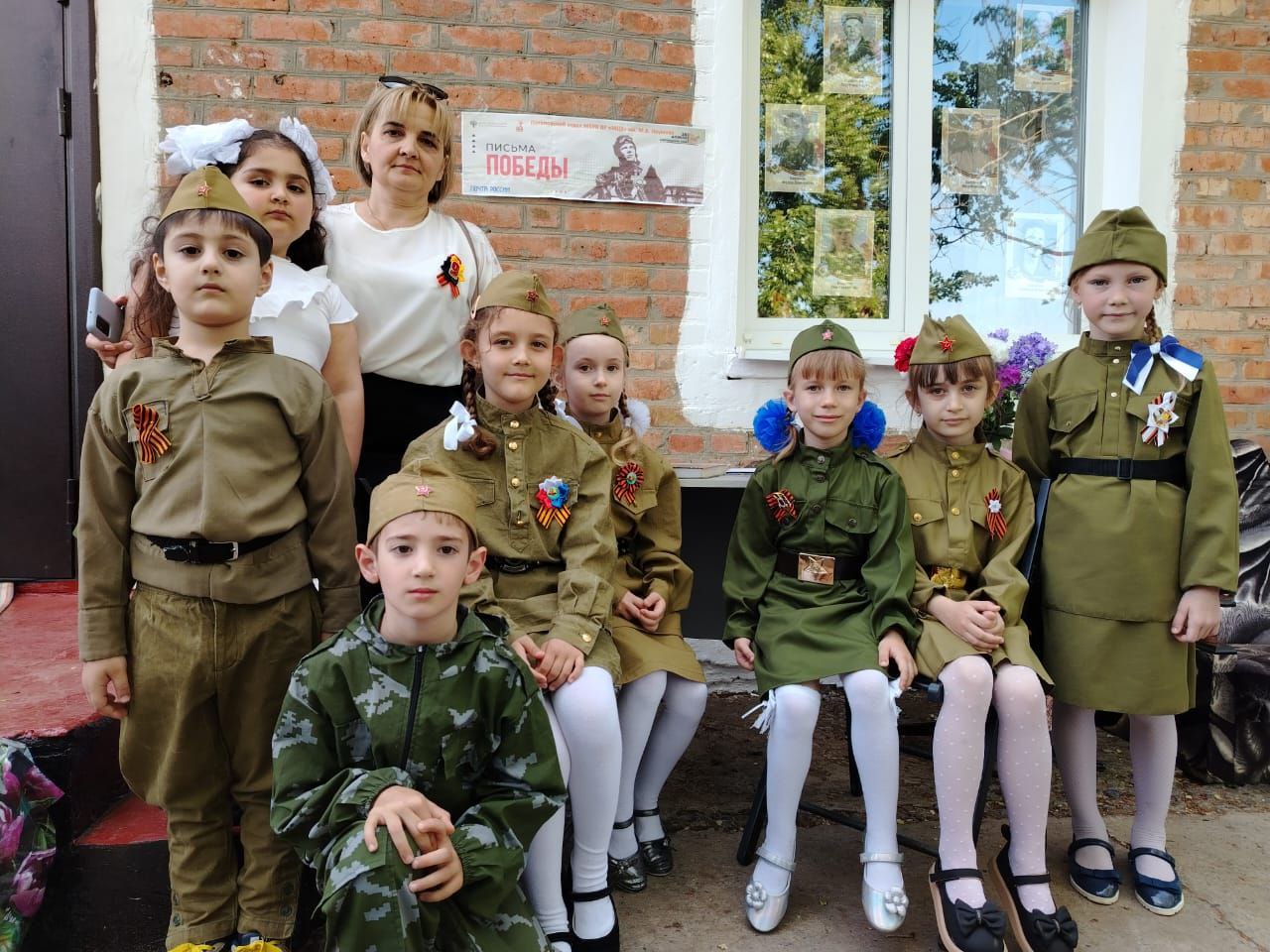— Ребята исполнили песню военных лет «Катюша», которая помогала нашим бойцам сражаться с врагом, и дополнили выступление стихами и танцем, — говорит старший воспитатель С.В. Дьяченко. — Наши воспитанники приняли участие в мастер-классах: изготовление из бисера «Тюльпан Победы на Георгиевской ленте», плетение «Ковра Победы» по традициям казачества; познакомились с выставкой книг о войне «Строками тех, кто был в бою». На выставке были представлены художественные произведения писателей-фронтовиков. Родители совместно с детьми писали письма солдатам на СВО.