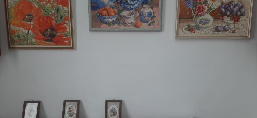 Следующая техника, которую использовала Залина Матвиенко для создания своих картин — вышивка крестом или как чаще называют — крестиком. У наших предков узор, вышитый крестиком считался не только украшением, но и оберегом от злых сил и средством привлечения счастья и удачи. Вышитые таким образом вещи носили как знатные, так и простые люди. Так же узор вышивки мог рассказать многое о человеке, ведь в разных регионах был свой неповторимый орнамент. Такая вот вышитая визитная карточка. И «самодеятельности» в таких узорах было немного.