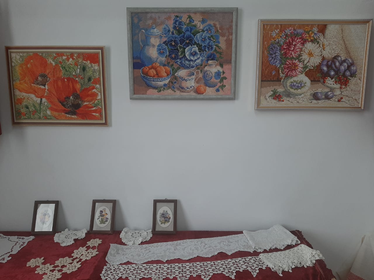 «Какая красота!» — восклицали посетители, увидев экспонаты выставки, с оригинальным, но верным названием «Чудеса на кончике иглы». Даже трудно поверить, что когда-то все донские казачки могли создавать иглой и шерстяными нитками, не побоюсь этого слова, шедевры. Использовали шерстяные нитки для вышивания преимущественно на Дону — в других регионах предпочитали иной материал.