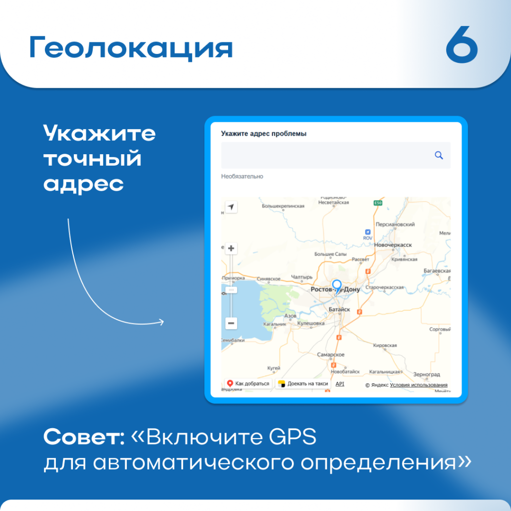 Жители Дона могут воспользоваться «Платформой обратной связи» (https://clck.ru/3NEagF) для решения различных вопросов: ямы на дорогах, неисправное освещение, незаконные свалки, благоустройство дворов и другие проблемы.