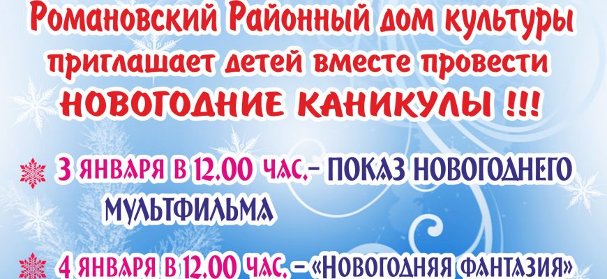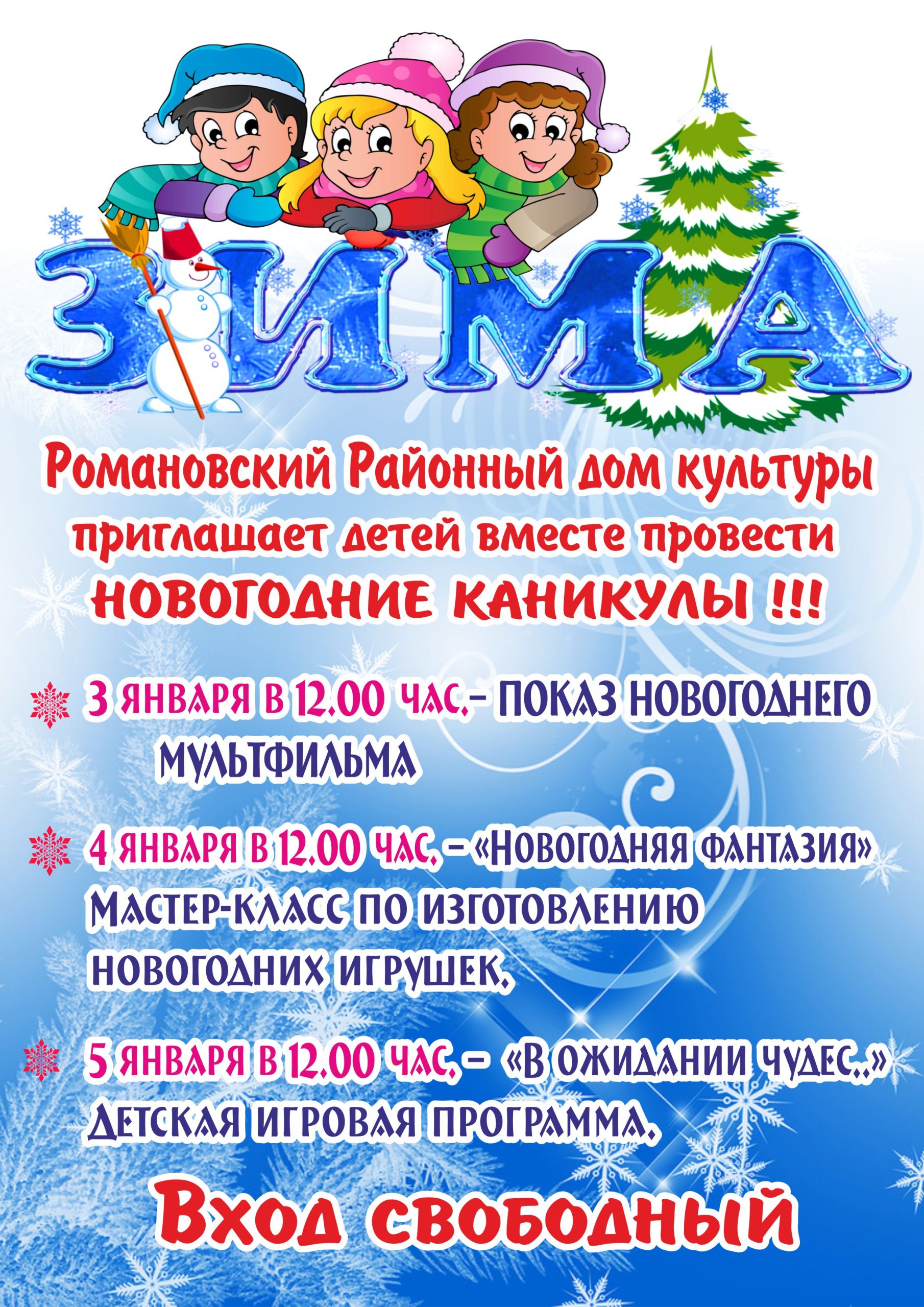 Главная » Общество Романовский РДК приглашает детей вместе провести каникулы! Общество Автор admin На чтение мин Опубликовано 1 января, 2020