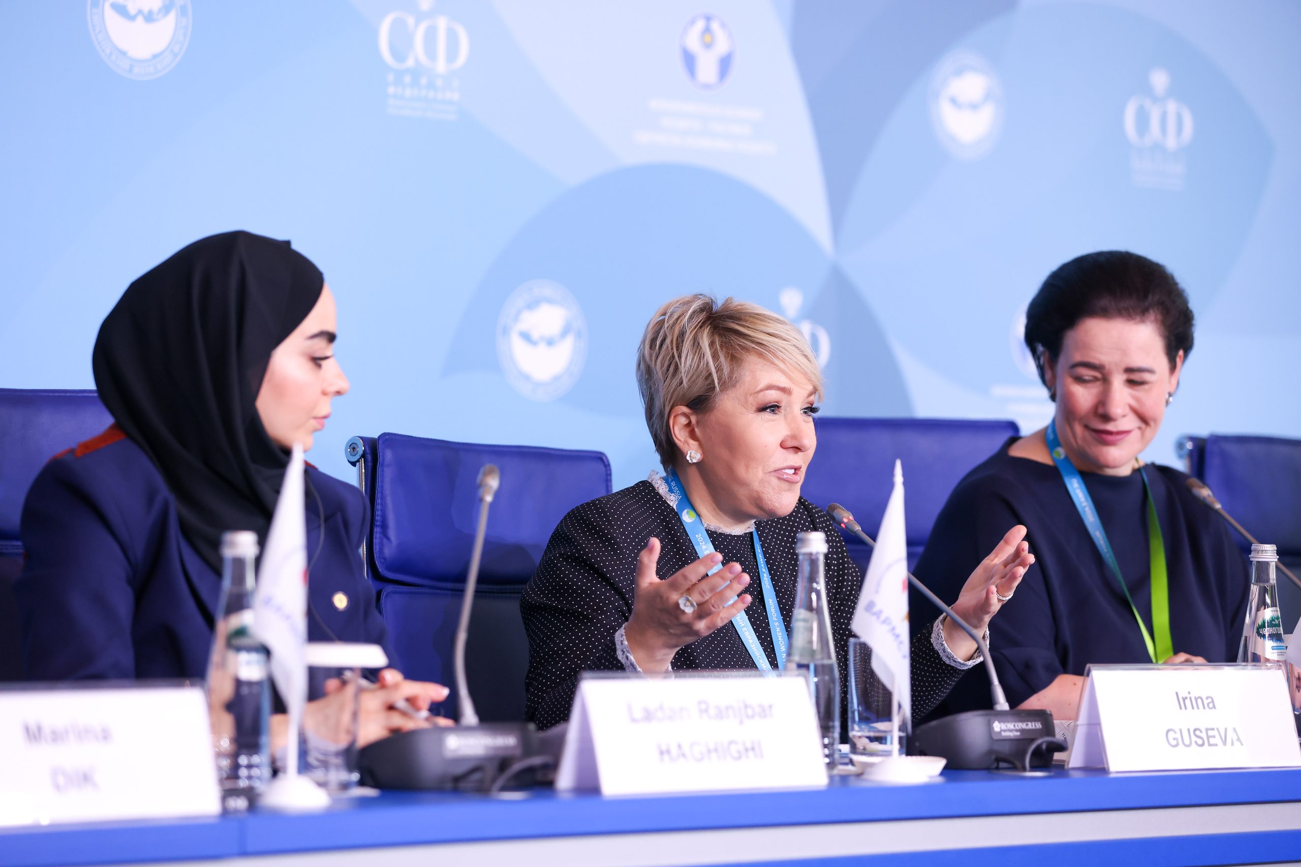 На сессии обсудили важность создания благоустроенных и безопасных территорий для жителей своих городов. Женщины поделились опытом по улучшению качества жизни граждан и инфраструктуры городов. Также участницы подчеркнули значимость созидательной роли представительниц прекрасного пола в формировании справедливых и добрососедских отношений между государствами.