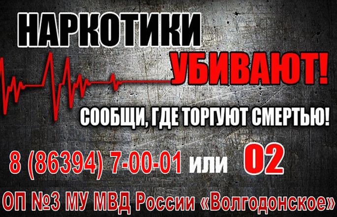 Если вы обладаете информацией о наркопритонах, точках сбыта запрещённой продукции и иных местах распространения наркотических средств, психотропных и иных веществ, вызывающих одурманивание, на территории Волгодонского района, о лицах, вовлечённых в незаконный оборот наркотиков, а также фактах безрецептурной реализации кодеинсодержащих лекарственных препаратов в аптечных организациях нашего района, незаконной реализации несовершеннолетним лицам алкогольной и табачной продукции в предприятиях розничной торговли, а также товаров, содержащих сжиженный углеводородный газ, не оставайтесь в стороне, примите участие в акции. Возможно, именно вы, сможете спасти чью-то жизнь от пагубного воздействия наркотиков!