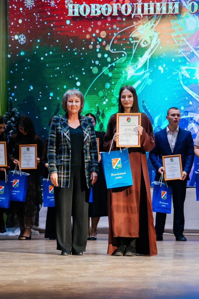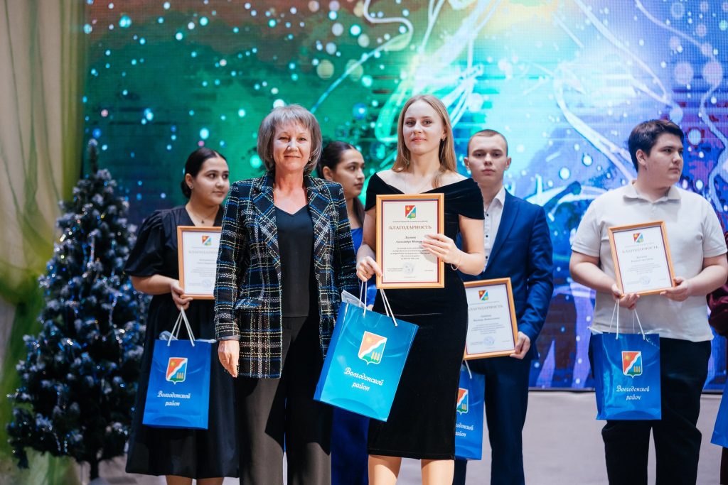 Благодарностью главы Администрации района за вклад в реализацию государственной молодёжной политики на территории муниципального образования «Волгодонской район» по итогам 2025 года в этот предновогодний вечер были отмечены двадцать девять молодых людей: Азиза Байматова, Виктор Гриднев, Динара Байматова, Роман Дионидис, Элиф Кабилова, Игорь Ковалев, Алина Костюк, Виолетта Кузнецова, Александра Лесовая, Надежда Малюгина, Алина Мамедова, Владимир Марченко, Олеся Менякина, Анна Мороз, София Мухаматова, Елизавета Найденова, Денис Прусаков, Евгений Рыжкин, Корней Рымарь, Юлия Самсонова, Герман Соков, Юлия Соколова, Мяляк Соломатина, Виктория Сорокина, Мария Уварова, Мадина Файзуллаева, Дилбар Шавкатова, Эльвина Шахзадаева и Дарья Шорохова.
