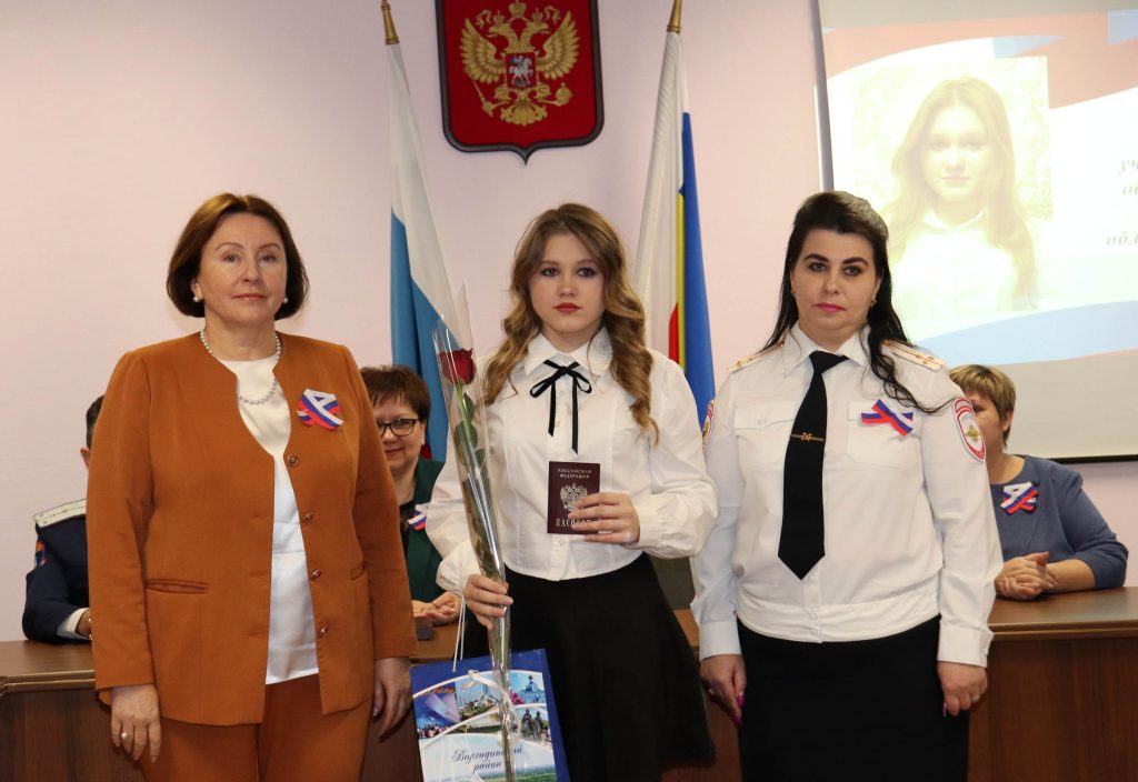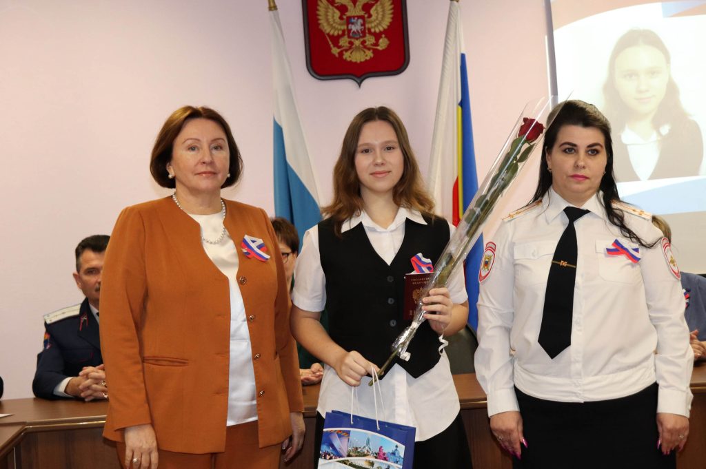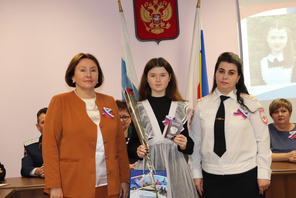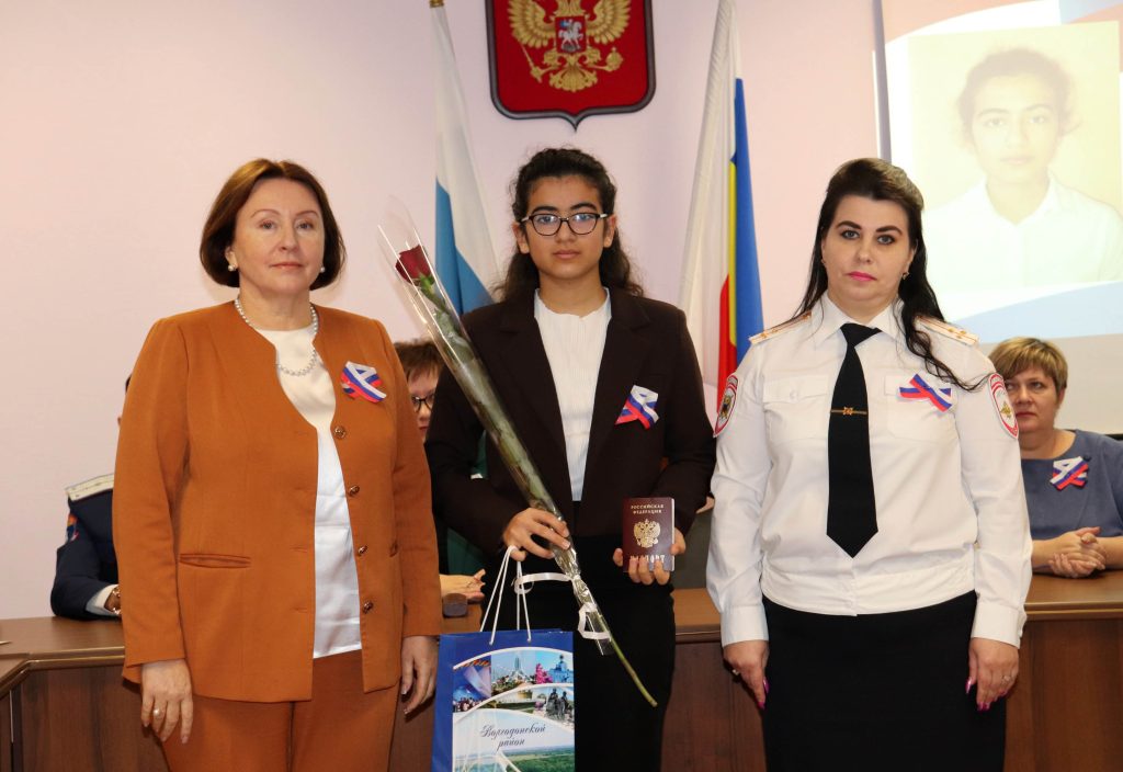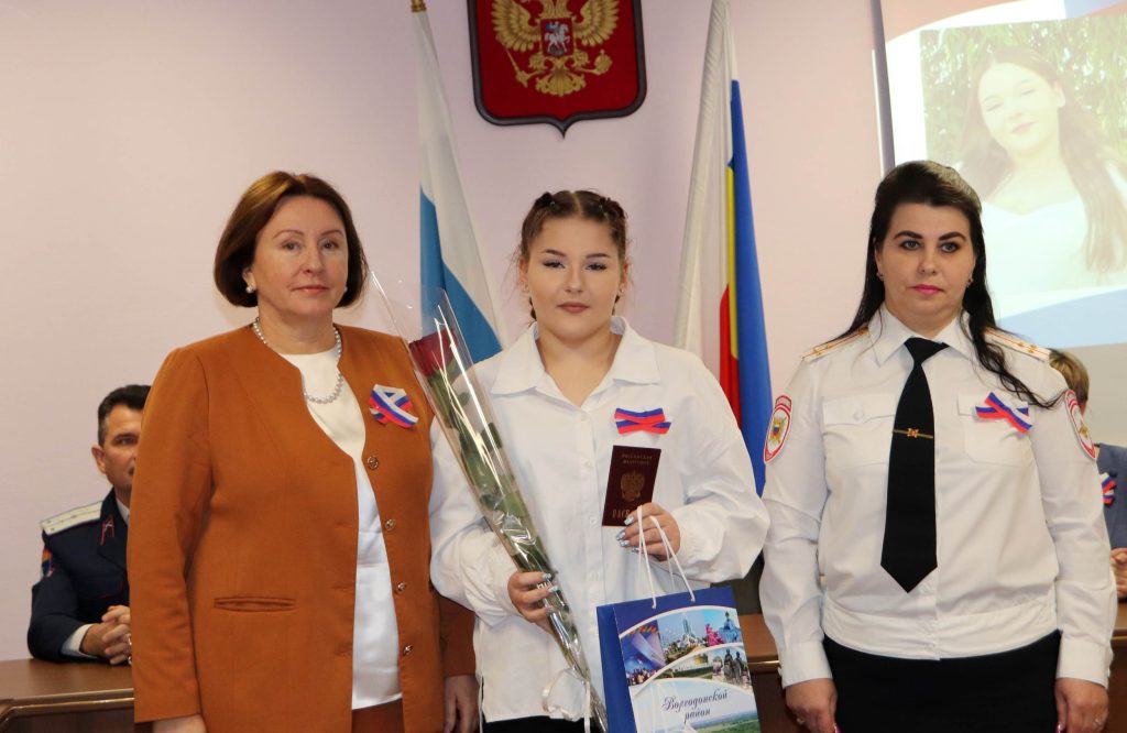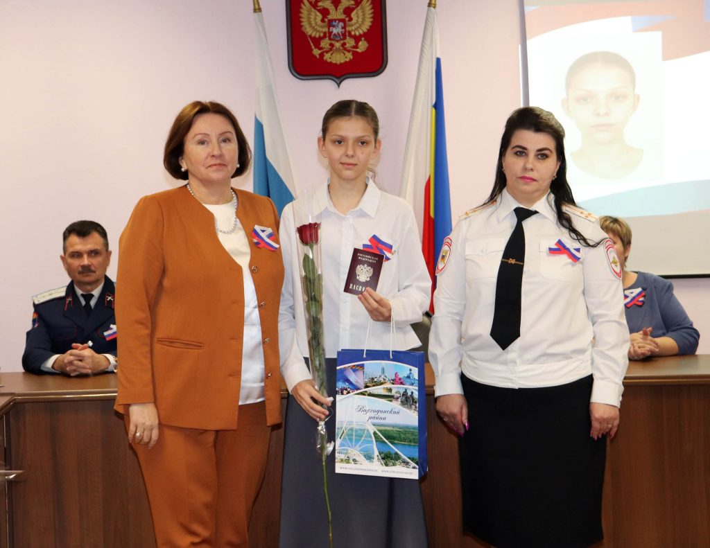 Глава администрации Волгодонского района Светлана Леонова лично вручила документы юным жителям, отличившимся в учебе, спорте и общественной деятельности. В числе получивших паспорт в этот праздничный день были отличники, спортсмены, волонтеры, активисты «Движения Первых», юнармейцы и юные казаки. Среди них Сарра Бакунец, Андрей Белокон, Ольга Богер, Дарья Занозовская, Сергей Кравцов, Дарья Мусаева, Элшод Нурудинов, Дарья Савичева, Дарья Чиркова, Максим Чудинович и Диана Яковлева.