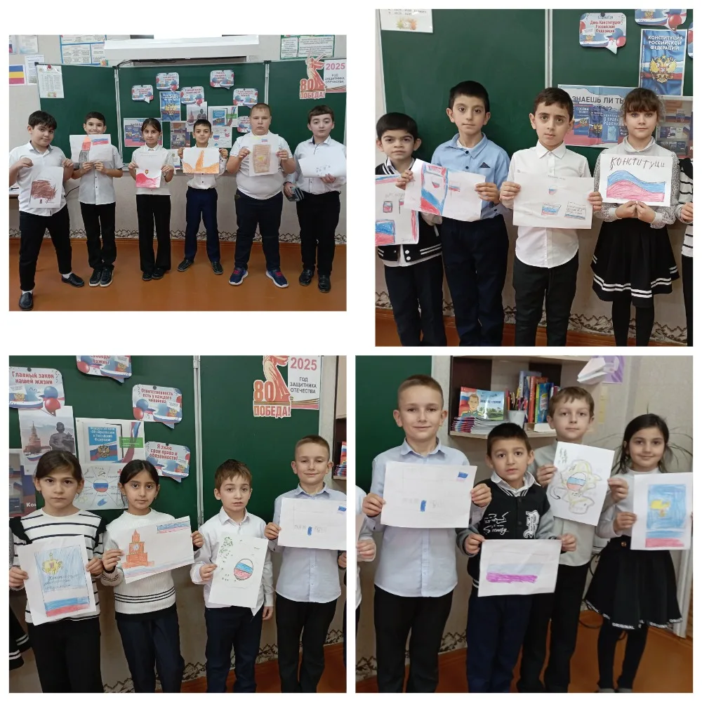 Советник директора по воспитанию Наталья Лирник подготовила для школьников познавательную программу. Ученики 9 класса приняли участие в интеллектуальной игре «Что мы знаем о Конституции?», где в формате квиза проверили свои знания основного закона страны. Для ребят из 2-4 классов было организовано коллективно-творческое дело «Моя страна – Россия». После просмотра тематического видеоролика дети обсудили значение Конституции, а затем в рисунках выразили свое понимание роли законов в жизни общества.