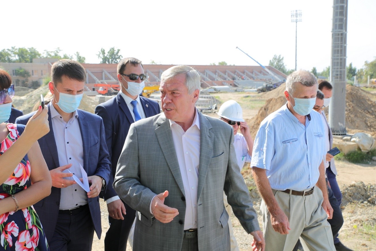 Глава донского региона Василий Голубев побывал с рабочим визитом в г. Шахты и проинспектировал ход строительства социально значимых объектов города. На стройплощадке стадиона «Шахтер», где пообщался с подрядчиком и горожанами.
