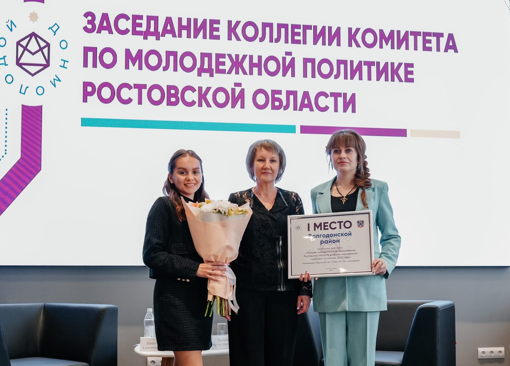 Подводя итоги коллегии, заместитель Губернатора Ростовской области Артём Хохлов вручил диплом за 1 место по итогам рейтинга «Лучшее муниципальное образование Ростовской области в сфере молодёжной политики по итогам 2024 года» заместителю главы Администрации Волгодонского района по социальным вопросам Елене Назаренко.
